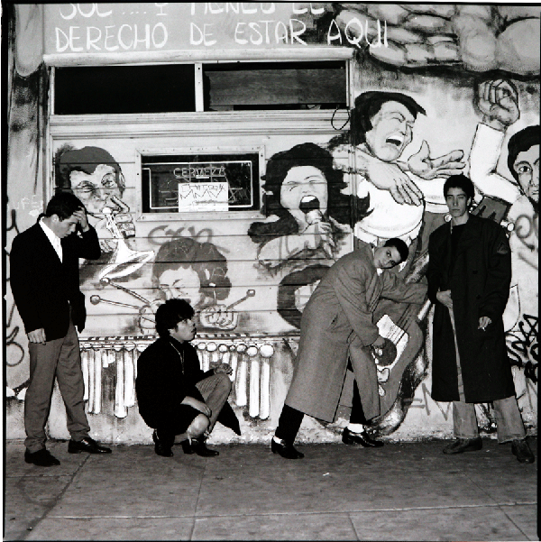 In 1983 I was in Los Angeles documenting the East LA gang El Hoyo Maravilla – their turf was centered around the Hoyo Maravilla park and clearly marked by the local artists. East LA was covered in paintings too I shot punk band The Undertakers (below) at their rehearsal space in the barrio.