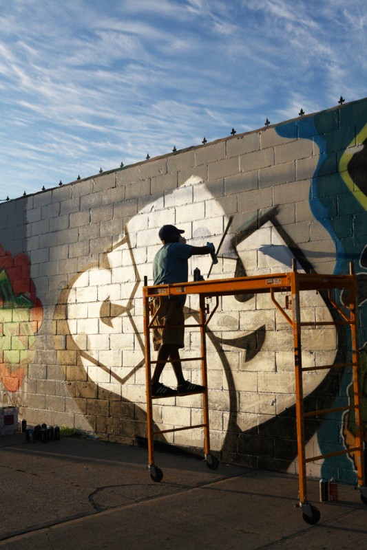 One weekend a year the area called Welling Court in Queens becomes a street art gallery. The project organized by Ad Hoc has grown each year with crews of legendary, groundbreaking, and up-and-coming artists transforming the neighborhood into a public art experience. This year saw legends like John Ahearn who cast street legend Smith (below), Cey (above), Lady Pink (below), and many more painting from dawn till dusk.