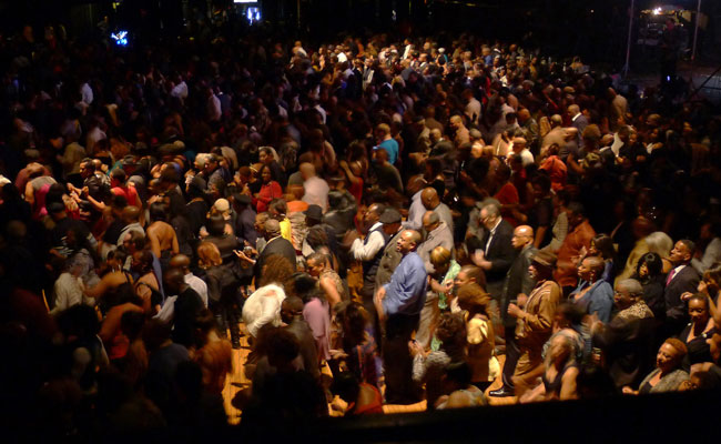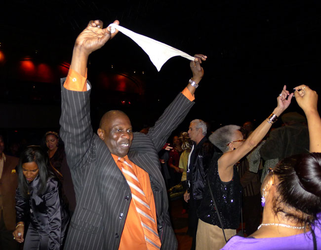 Last Saturday I went to Roseland for the 20th Anniversary of the ‘Rhythm Revue’. For those that do not know the Rhythm Revue is an all out soul, disco dance party hosted by famed DJ Felix Hendandez. The dressed up crowd, mostly original soul, funk and disco lovers from back in the day, some of the guys sporting all out zoot suits with hats and shoes to match, the ladies in tight dresses and a good bit of sparkle. The party is famous for the biggest electric slide – some 3000 people all dancing in line – and classic soul music – it was amazing. Get ready for the next party, a Hurricane Sandy benefit at Roseland on December 15th.